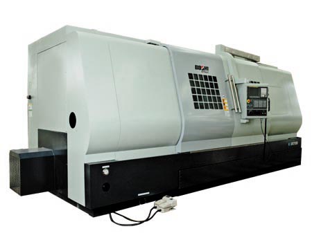 概述: CK43系列曲軸連桿頸數(shù)控車床是針對汽車行業(yè)中曲軸連桿頸加工而研制的專用數(shù)控機床,它是通過左右兩主軸箱帶動偏心夾具來完成曲軸連桿頸的半精加工、精加工。該系列機床由床身、左主軸箱、右主軸箱、左右專用夾具、滑鞍、刀架(配有12工位可轉(zhuǎn)位圓刀盤)、數(shù)控系統(tǒng)、電氣系統(tǒng)、冷卻排屑系統(tǒng)、潤滑系統(tǒng)及防護系統(tǒng)等構(gòu)成。采用臥式床身、底座結(jié)構(gòu),高強度鑄鐵鑄造,高剛度、寬矩形淬硬導軌。床鞍及滑板系高強度鑄鐵鑄造,導軌副采用貼塑材料,動、靜態(tài)摩擦力小,主軸采用德國FAG大直徑精密角接觸雙向推力球軸承與雙列圓柱滾子軸承組合排列,具有好的剛度。X、Z軸滾珠絲杠采用預拉伸螺母結(jié)構(gòu),支承軸承采用日本NSK角接觸專用軸承,大大提高了絲杠的剛度和抗熱變形的能力,并使進給***度大幅度提高。刀架采用意大利DM公司12工位臥式電動刀架。